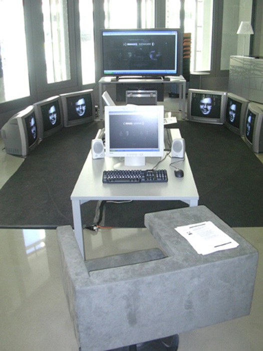 Il s’agissait là à cet emplacement de cette liste d’une installation exceptionnelle crée par Fred Forest à la demande d’Emmanuel Hoog Président de l’Ina, hébergé sur ses serveurs et mise en œuvre par ses développeurs pour marquer la création à l’Ina d’un nouveau service dédié à la création contemporaine. Une création exceptionnelle, car il s’agissait là à notre connaissance de la toute première installation participative en ligne réalisée dans le monde. Elle consistait à considérer le web comme une énorme mémoire collective où chacun, accompagné par un des quatre guides (deux femmes et deux hommes) pouvait se rendre en son centre. Sous leur conduite il était possible pour le visiteur du site de taper un nom sur le clavier pour que soit lancée une recherche sur le web qui après avoir moulinée ramenait 63 réponses. Toutes ces réponses s’inscrivaient dans une configuration carrée.